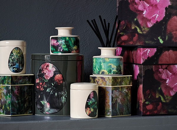 Including a Peony & Blush Suede Luxury Candle, Lime Basil & Mandarin and Mimosa & Cardamom Home Candles, and Lime Basil & Mandarin and English Pear & Freesia Diffusers, the limited-edition Martyn Thompson x Jo Malone London range is packaged in exquisite ceramic vessels all of which are crafted by design-led, British ceramics manufacturer 1882 Ltd. and decorated with his unique, painterly photography. ‘I use a technique that I discovered quite by accident, where I keep the ink wet for a long time, let it dry, manipulate and re-photograph it several times. This way photography becomes a tool for craft’ he explains. ‘The oval shapes on the vessels take their cue from Victorian cameos and are something I use a lot in my work. Within them are a series of floral still lives, partly inspired by Cezanne, the colours of which relate back to the ingredients in the perfumes. Touches of green and orange in the Lime Basil & Mandarin, and yellow in Mimosa & Cardamom - just a suggestion of colour.’