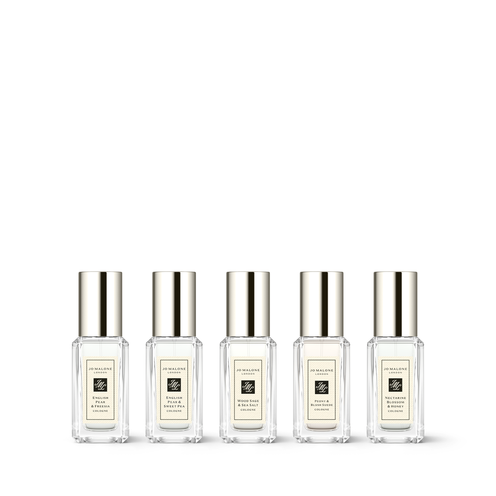 The gift of fragrance exploration. This festive gift box contains five timeless Jo Malone London colognes in 9ml bottles, including Peony & Blush Suede, luscious English Pear & Freesia and fresh Wood Sage & Sea Salt. Each one can be worn individually or layered together for a festive match.
